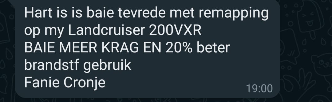All ECU tunes have been pre-Dyno tested and your ECU will be read and written while using a battery charger to ensure the safety of your vehicle. All vehicles will also be scanned prior to any reading or writing of the ECU using a diagnostic tool to ensure the vehicle is healthy and can be tuned. Expected power gains of up to 30% and better fuel efficiency of 20% on specific vehicles.